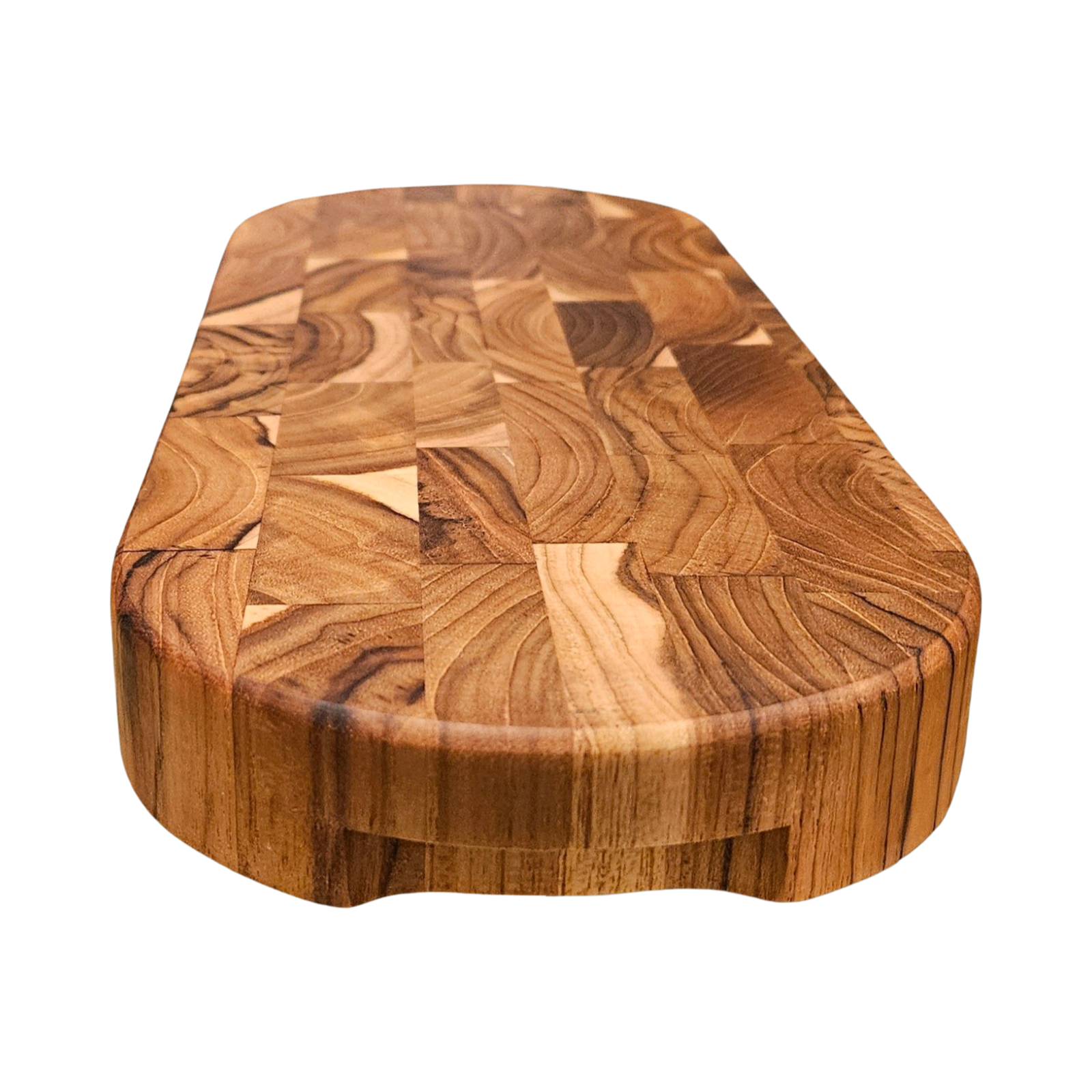 Expertly crafted, this Capsule Shaped Cheese Block measures 14.5 inches by 5 inches by 1.5 inches and is made with end grain for durability. Its grooves make for easy pickup and the rubber feet keep it in place while you slice. Enjoy perfectly cut cheese every time.