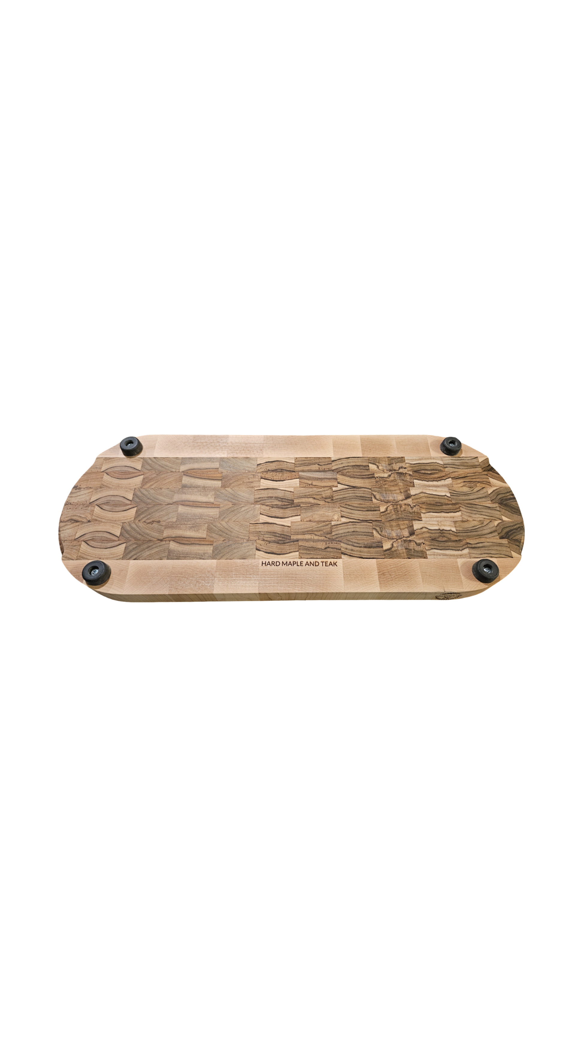 Introducing the Capsule Butcher Block - the perfect fusion of form and function. Its unique capsule shape adds a touch of charm to your kitchen while the 23.75 x 9 x 1.5 end grain Teak and Maple construction ensures durability and easy clean-up. Say yes to effortless meal prep with easy pick up grooves.