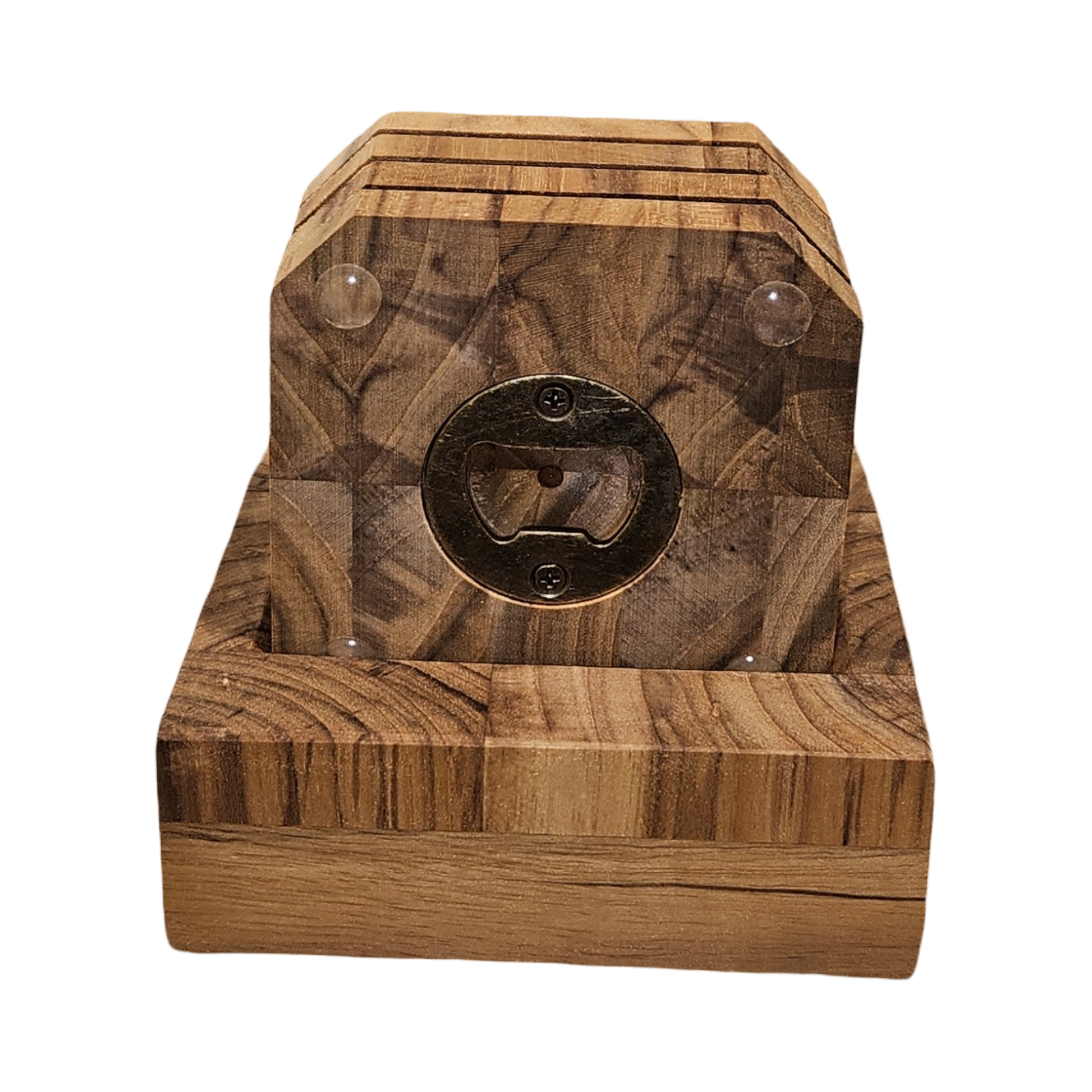 3.5" x 3.5" End Grain Teak Bottle Opener Coasters (Set of 4)