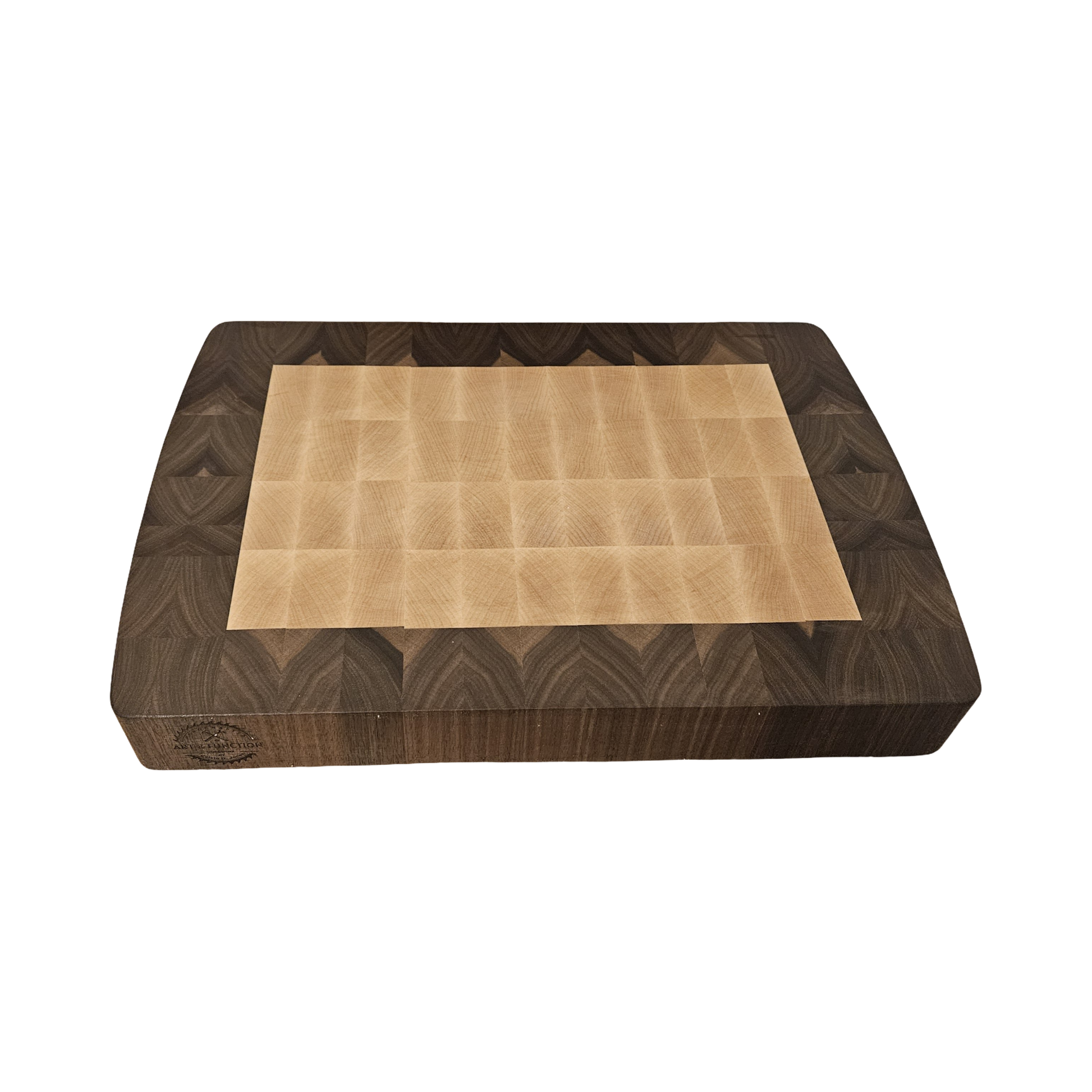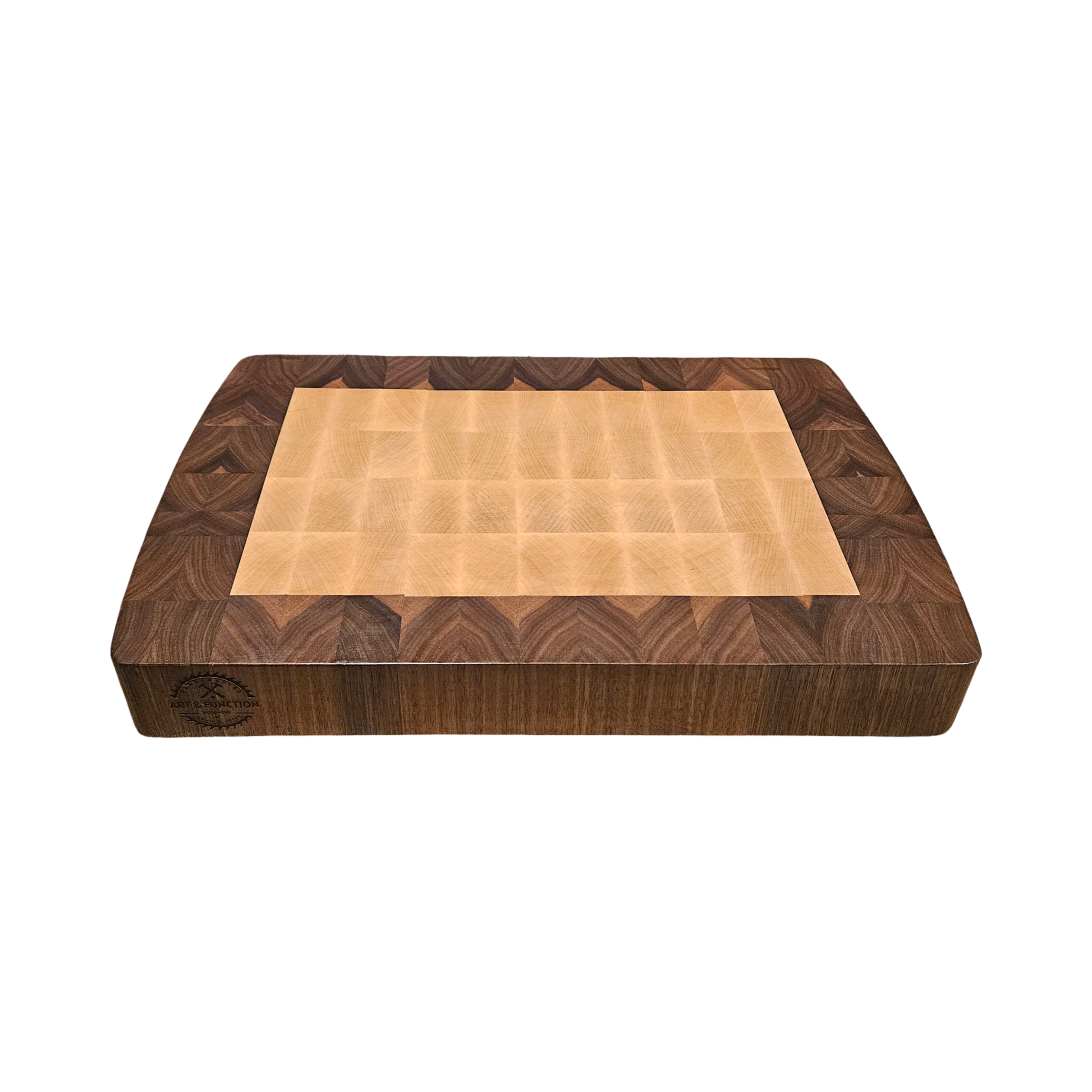 Crafted from high-quality Hard Maple and Walnut, this 16.5" x 14.75" x 2" end-grain butcher block offers durability and style. Its rubber feet provide stability while the easy pick up grooves make it convenient to use. Perfect for any kitchen, this cutting board is a must-have for any cooking enthusiast.