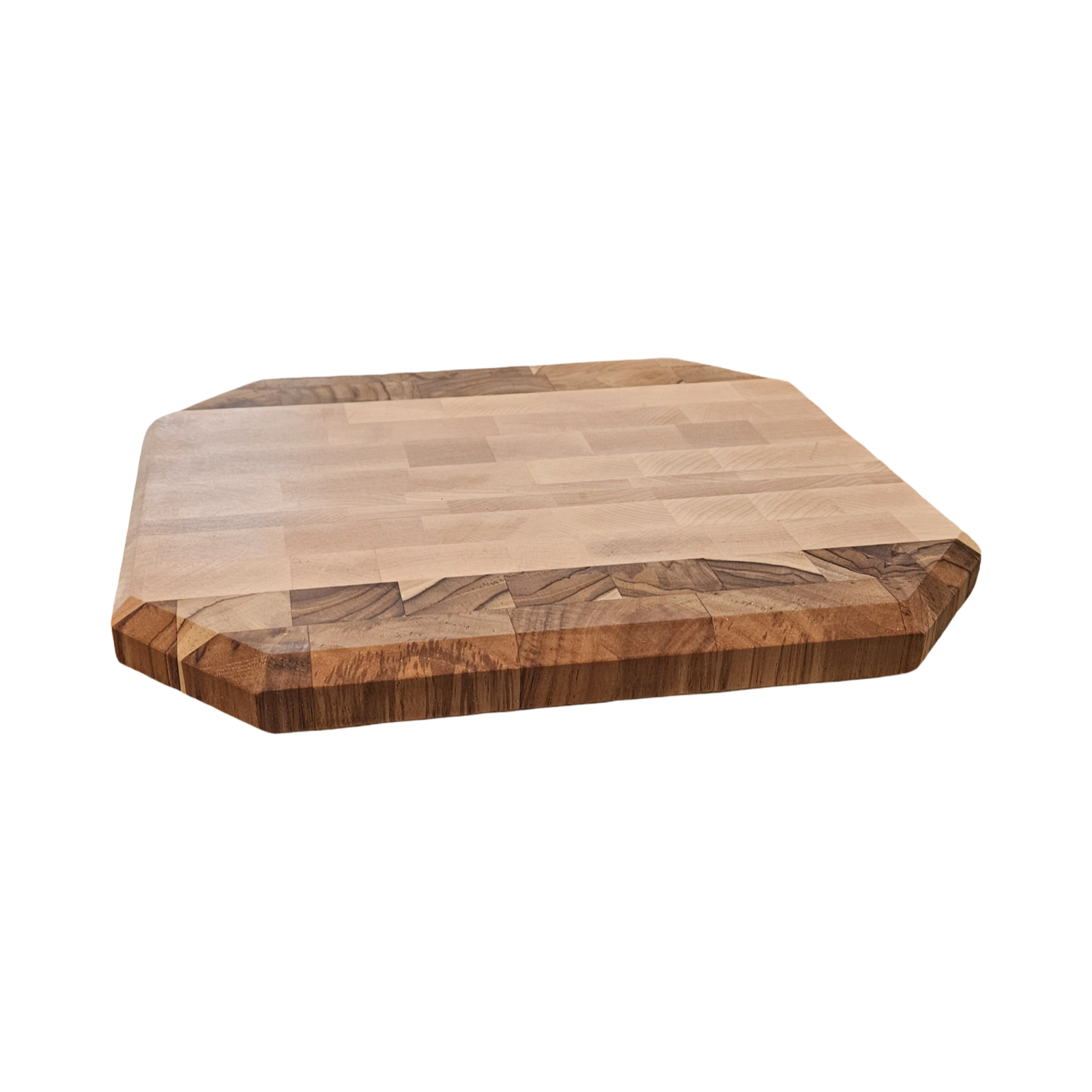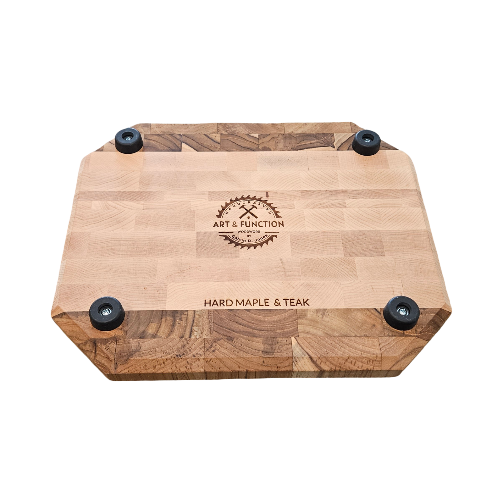 The Hard Maple & Walnut Butcher Block measures 10.75 x 13 x 1.25 inches and features an octagonal end grain design, promoting durability and resistance to knife marks. The addition of rubber feet enhances stability during use, ensuring safety and precision in food preparation.