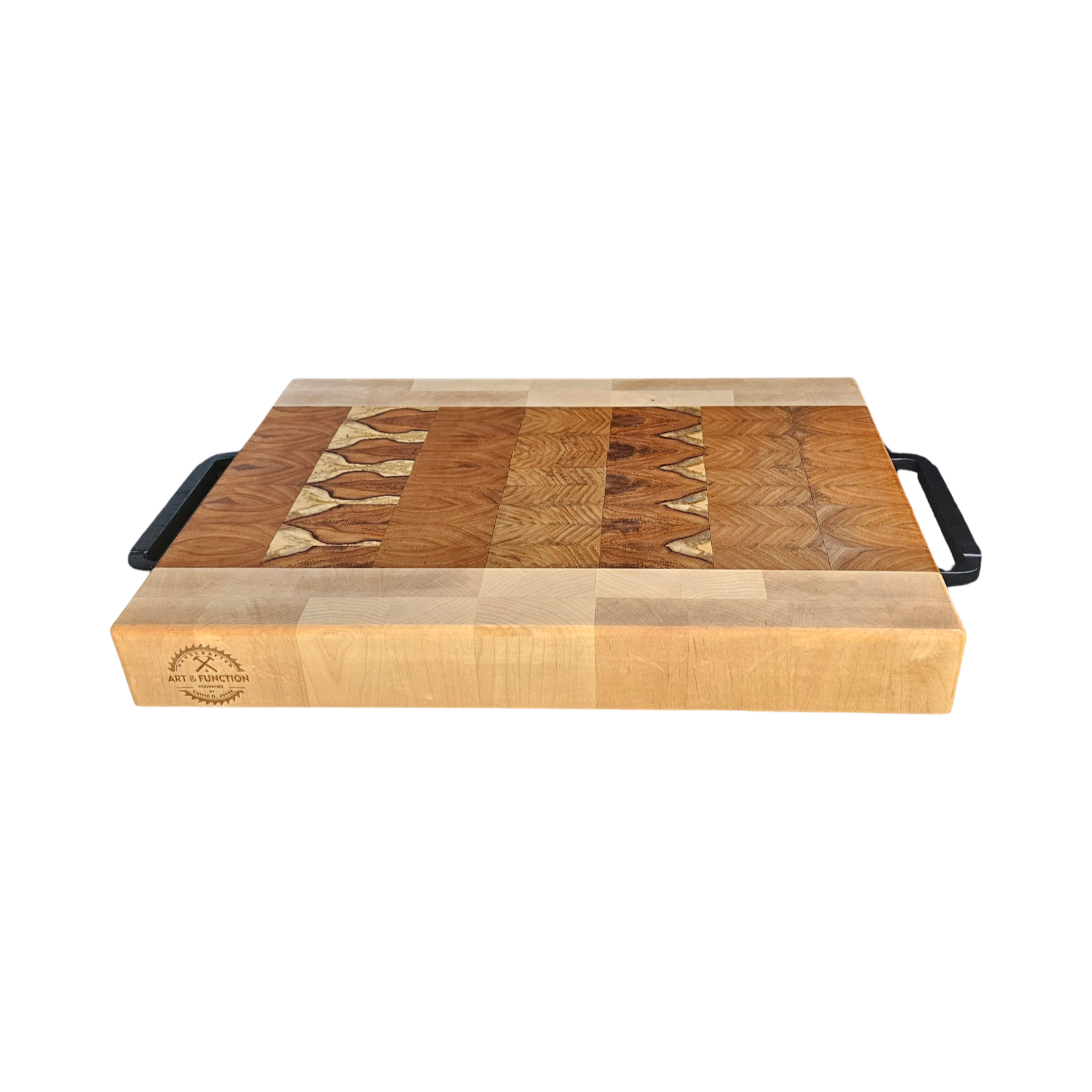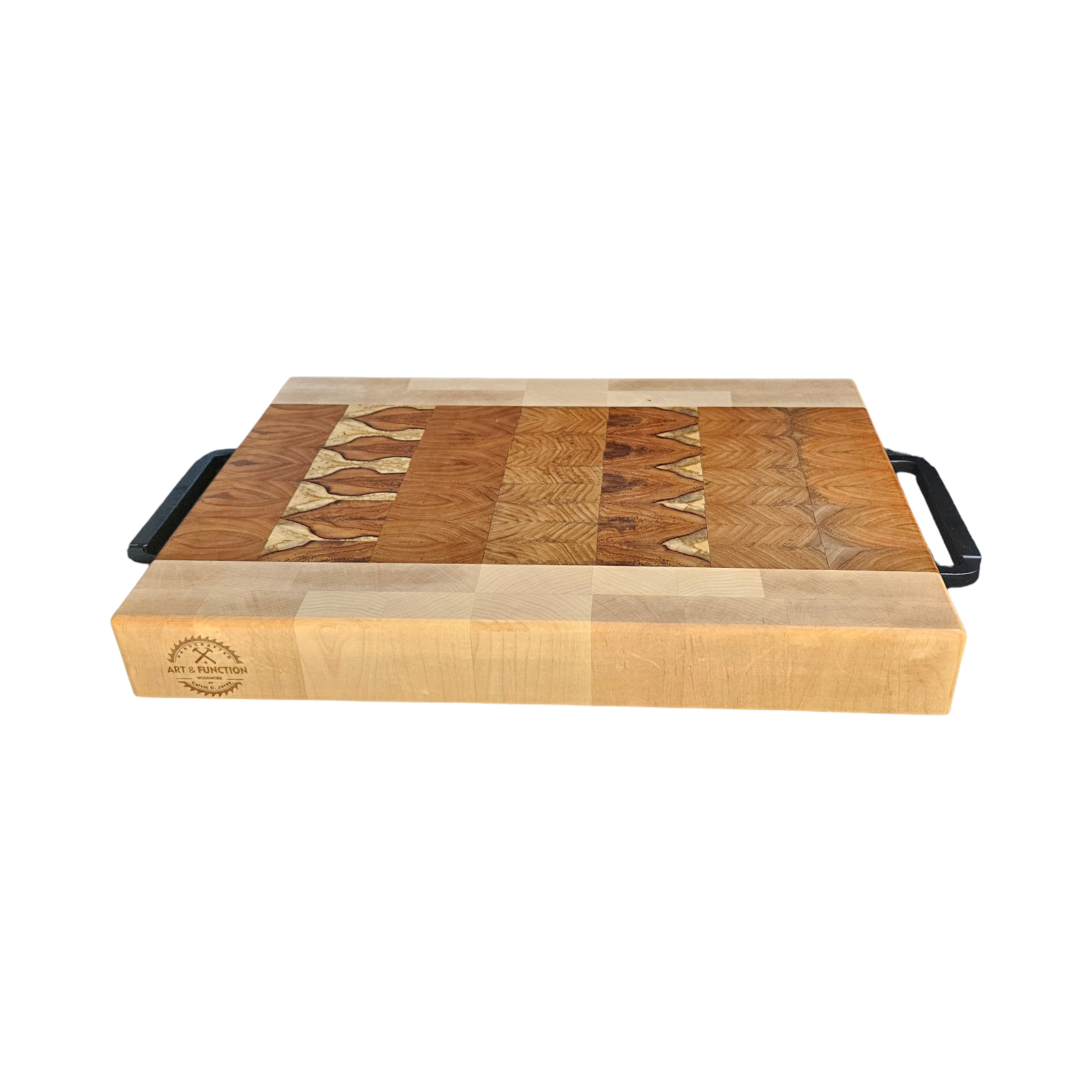 Expertly crafted for durability and functionality, this Teak and Maple Butcher Block measures 18.5 x 13.5 x 2 inches and is designed with black handles and rubber feet for added stability. Perfect for meal prep, this butcher block adds style to any kitchen while providing a sturdy surface for cutting and chopping.
