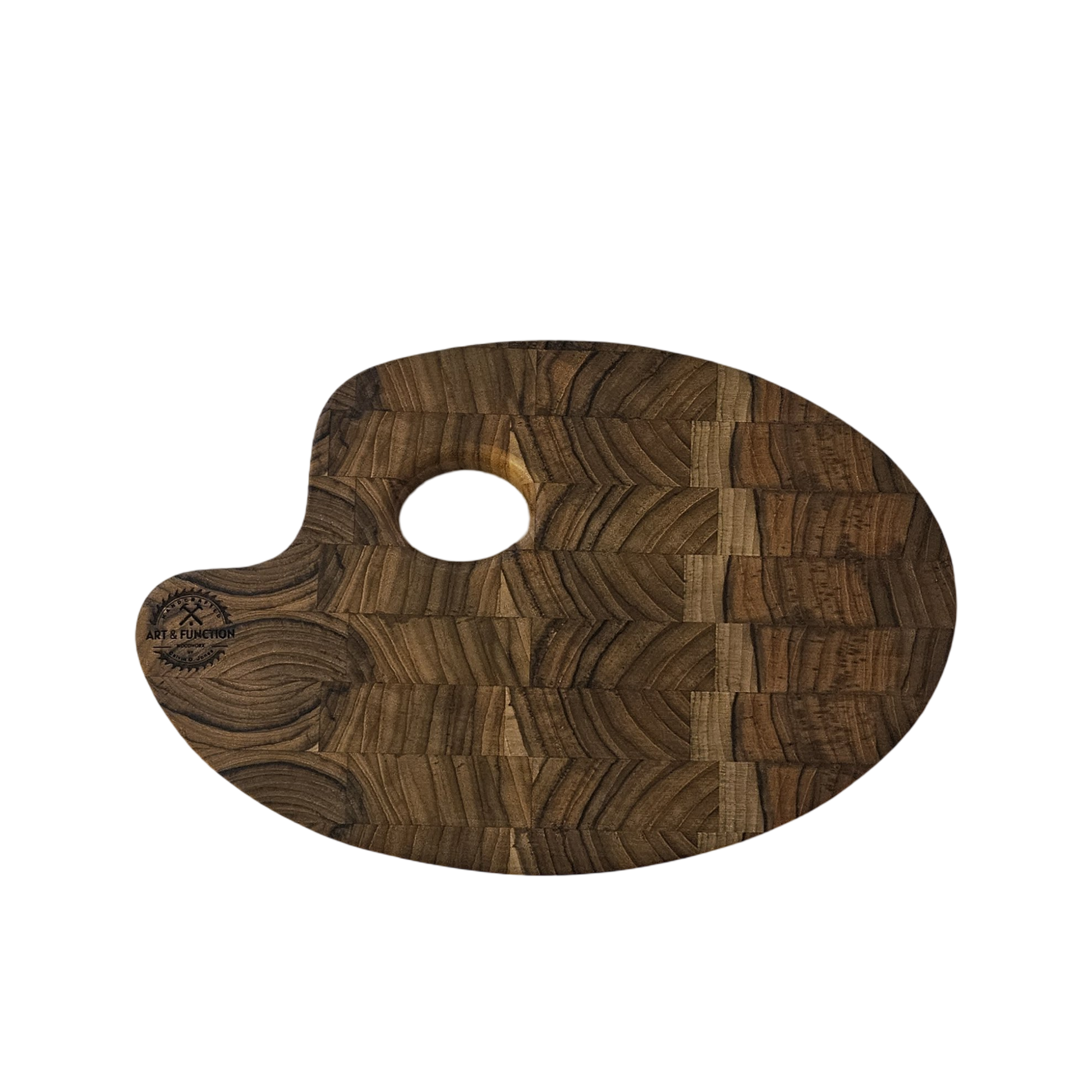 Crafted from high-quality end grain teak wood, this Small Artist Cheese Pallet measures approximately 8.5 x 12 x 1.5 inches. Perfect for cheese lovers and food enthusiasts, this butcher block provides a durable and stylish surface for slicing and serving cheese. Enhance your dining experience with this artisanal cheese pallet.