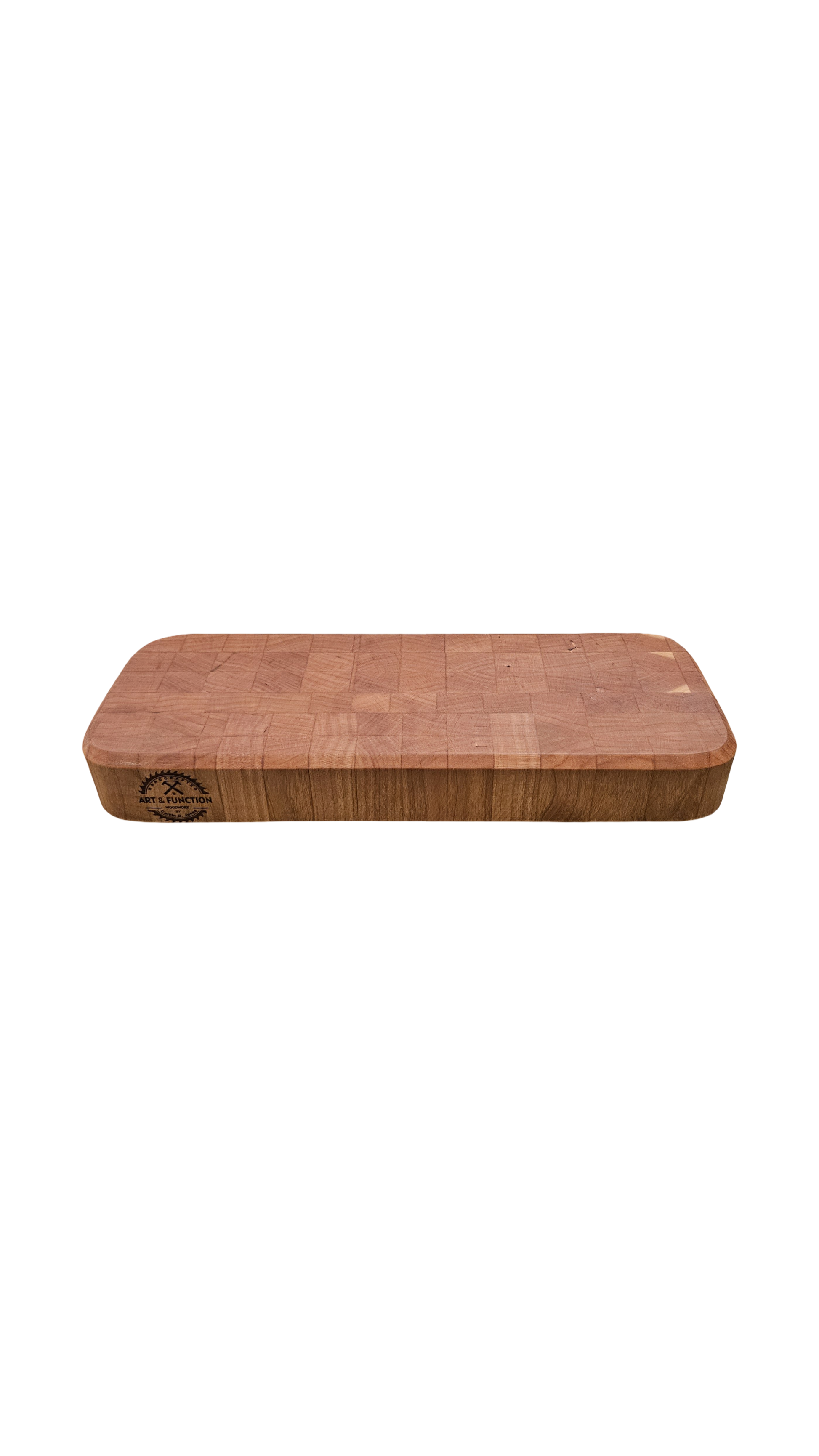 Indulge in the exquisite beauty and functionality of our Small Cherry Cheese Block. Made from 11.75 x 4.5 x 1.5 end grain cherry wood, this cheese block is not only visually stunning but also durable and resistant to knife marks. Perfect for all your cheese needs and a beautiful addition to your kitchen.