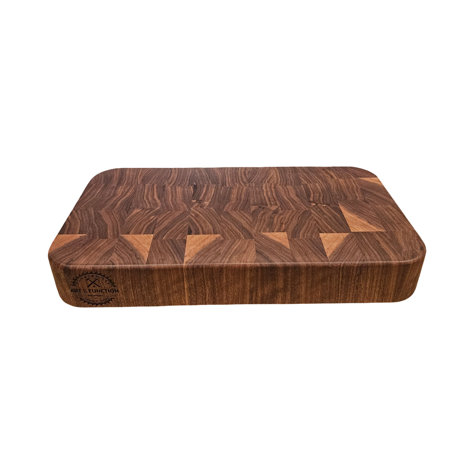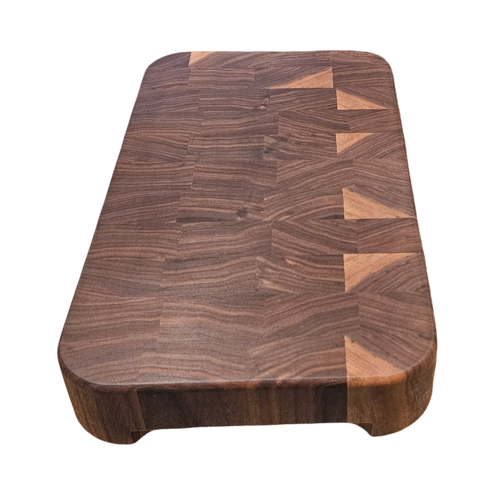 Crafted from durable walnut wood, this butcher block offers a generous 13" x 7.75" x 1.75" surface with black rubber feet for stability. Perfect for chopping and slicing, it ensures precision and protects your countertops. Enhance your culinary experience with this versatile and functional kitchen essential.